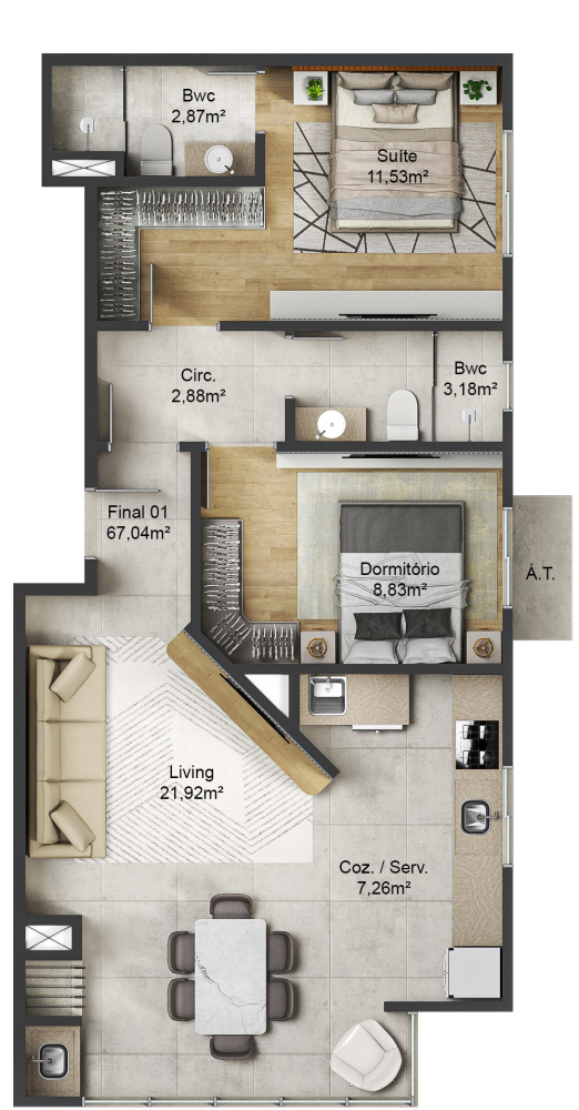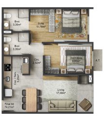 - APTOS COM ÁREAS PRIVATIVA DE 64m2, 67m2 E 74m2.